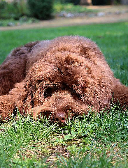 Meet Rollo, affectionately known as our brown bear of an Australian Labradoodle. His round, fluffy appearance is as endearing as his personality.