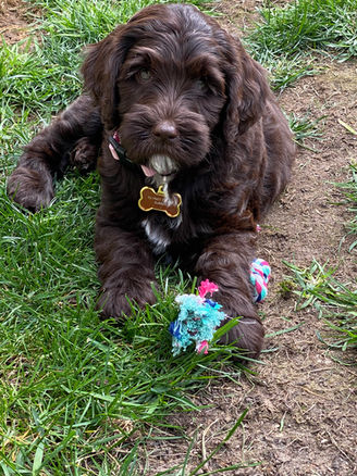 Sophie is is the daughter of our Van Isle labradoodle Field of "Clover" Dreams. Sophie possesses terrific examples of the Australian Labradoodle traits. She has a very blocky lab like build and a nice square head. Sophie also encompasses the temperament and athleticism we love to see in Australian Labradoodles. She is up for a hike, run, or walk whenever you are ready. She is overjoyed to see her people, offers endless amusement and joy to anyone that she encounters. Sophie lives in one of our Guardian Homes and her family describes her as "energetic, goofy, silly, persistent, determined, loveable, smart, and perfect!" She is easy to train and very clever. We look forward to seeing Chilliwack Labradoodles Sophie pass along outstanding Australian Labradoodle traits to her future puppies!