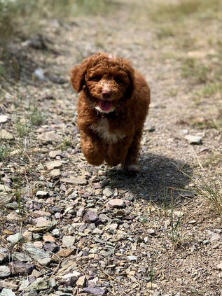 Copper is an extremely attentive miniature Multigenerational Australian Labradoodle. His Loyalalties already reside with his humans. No matter how much fun he may be having with his playmates or entertaining himself with a toy, he is quick to check in and make sure everyone is doing ok. Copper's genetics leave us with that amazing "triple effect. He carries for parti, phantom and will add the splashy white spotting too many of his puppies in his upcoming litters. With his well rounded confident temperament, fun personality and great genetics, Copper will compliment each of our girls tremendously well.