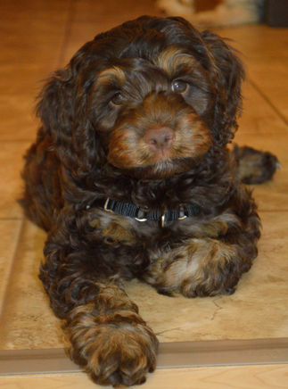We anticipate puppies with predominantly chocolate, chocolate phantom, or caramel coats. Some puppies may wear solid coats color, and some have white flashes.
